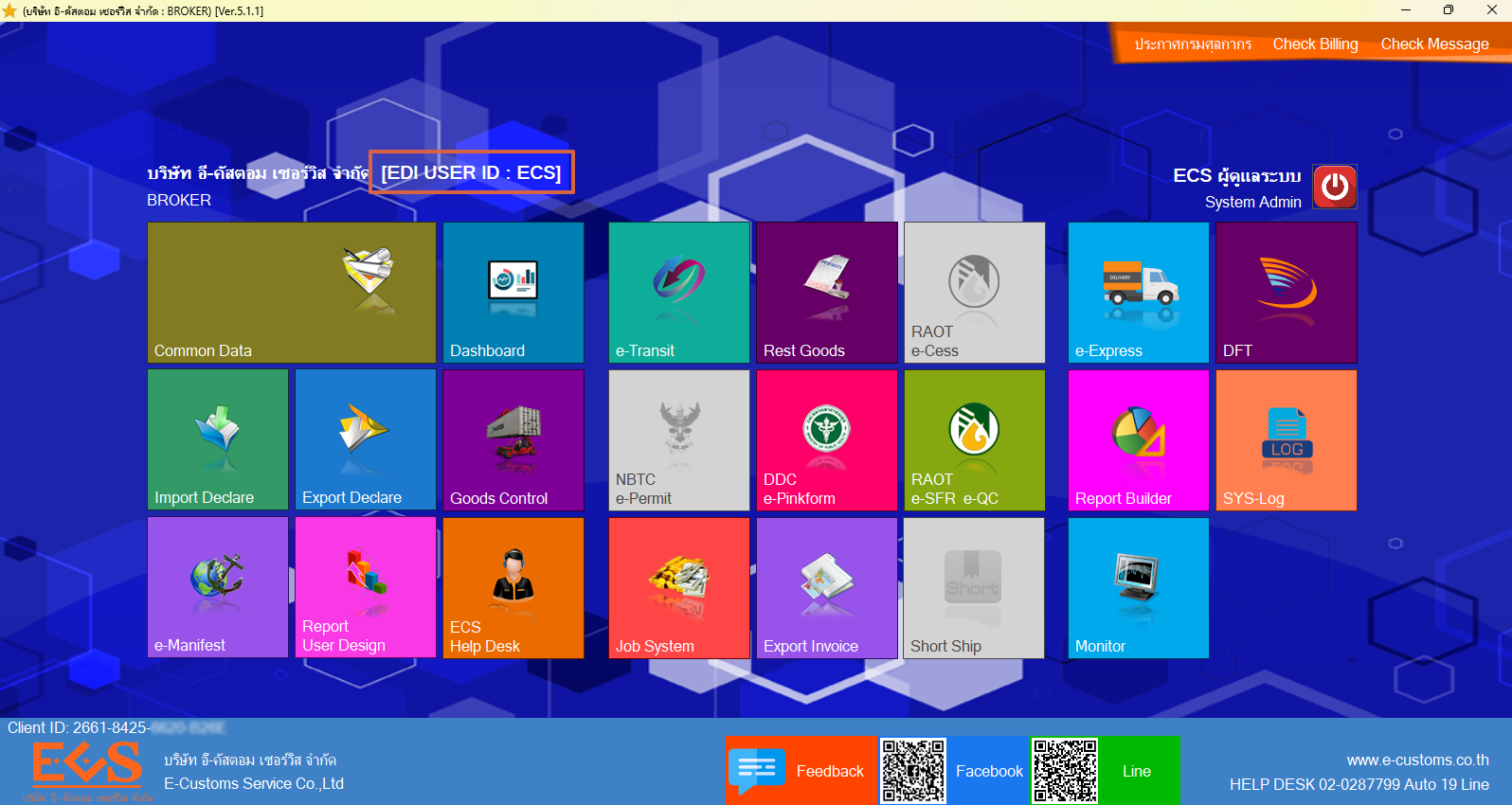 ผู้ใช้งานสามารถตรวจสอบรหัส EDIUser ได้จาก หน้าจอเลือกเข้าโปรแกรม โดยรหัสจะแสดงอยู่ที่ มุมซ้ายมือของหน้าจอ